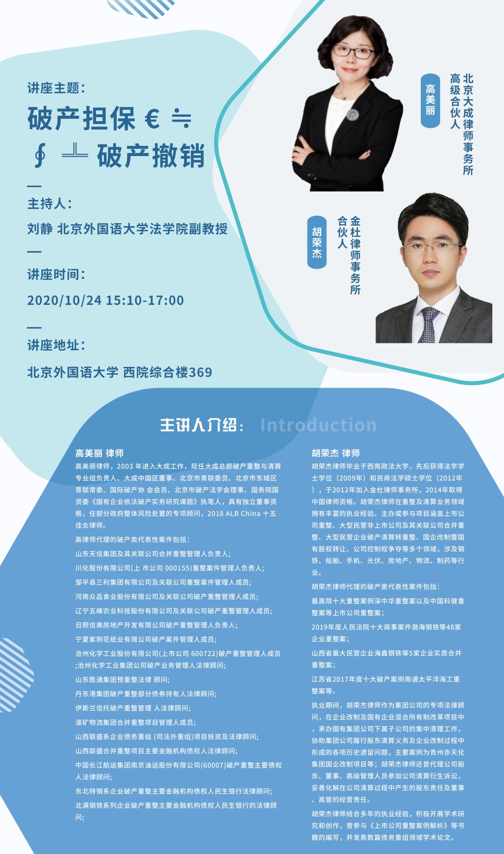 讲座预告:破产担保与破产撤销