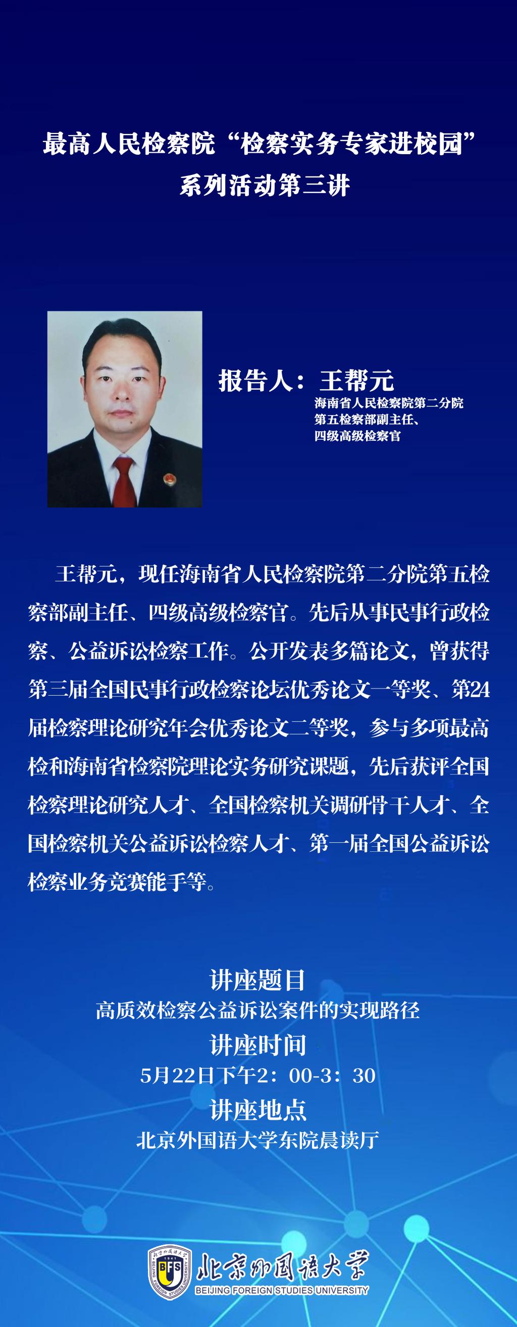 讲座预告:最高人民检察院“检察实务专家进校园”系列活动第三讲