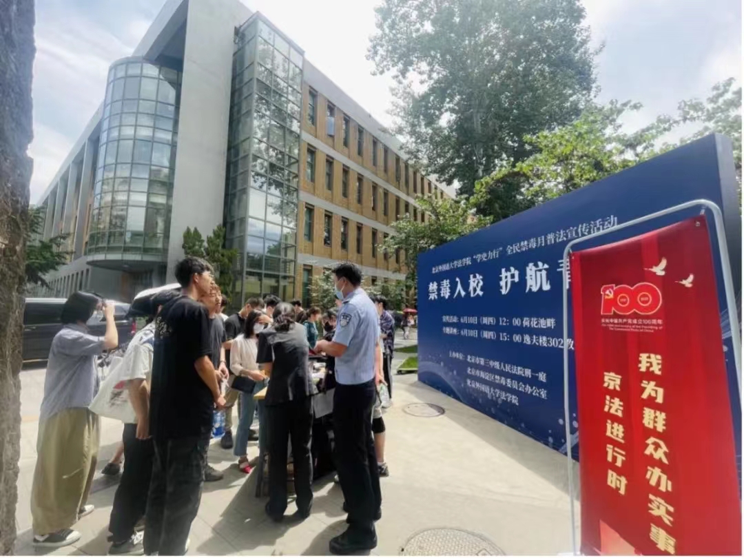 丽泽法律社联合北京市第三中级人民法院刑一庭、北京市海淀区禁毒委员会办公室,在每年的全民禁毒月开展“禁毒入校护航青春”主题宣传教育活动,以举办知识竞赛、开展专题讲座等方式向同学们普及相关知识。
