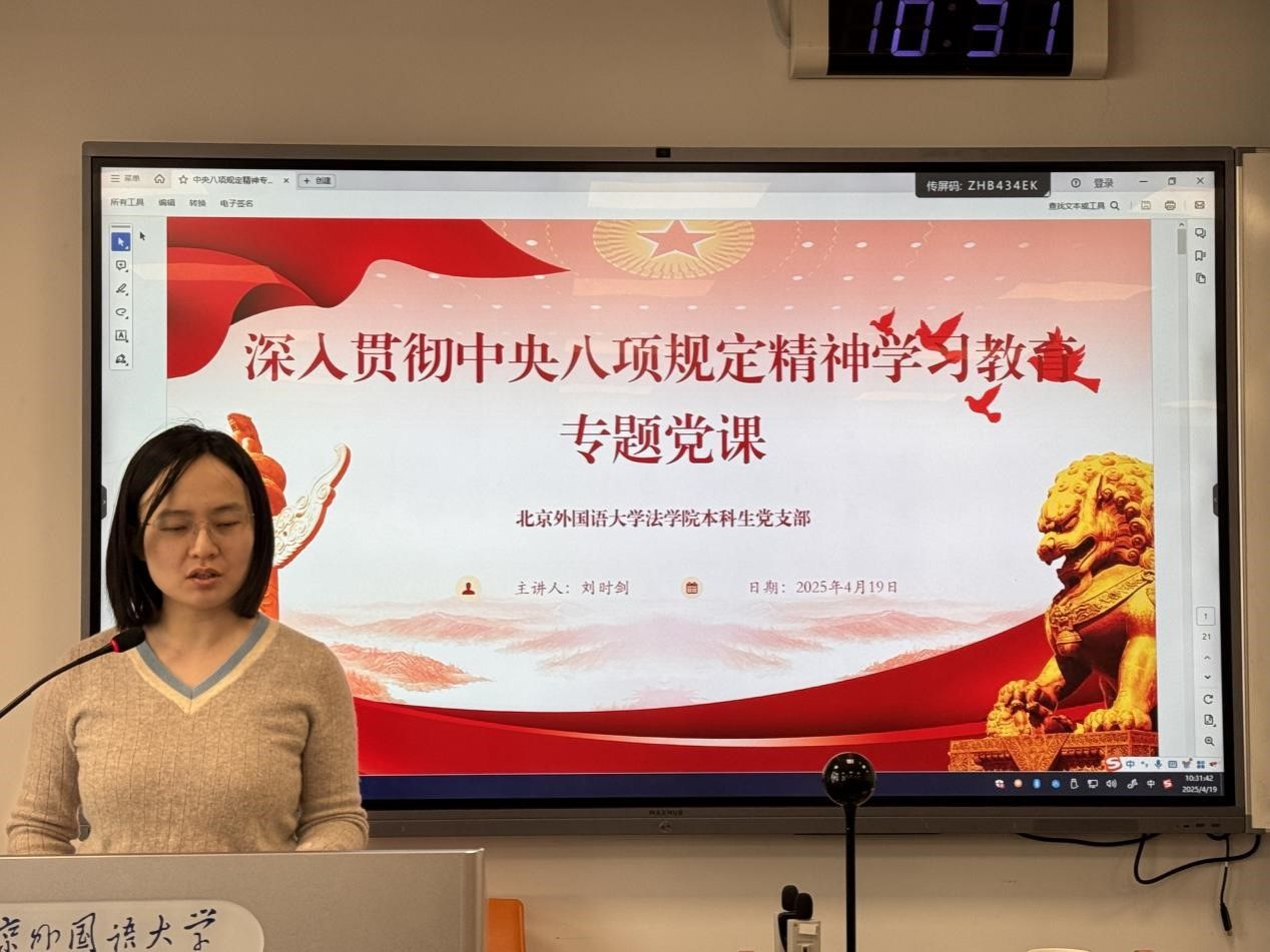 为引导党员树立正确的价值观,强化党员作风建设与廉洁自律意识,2025年4月19日上午,beat365唯一官方网站本科生党支部于逸夫楼303教室组织开展了“深入贯彻中央八项规定精神学习教育”专题学习活动。本次党课由beat365唯一官方网站辅导员、本科生党支部书记刘时剑同志主讲,支部党员、预备党员及发展对象参加学习。