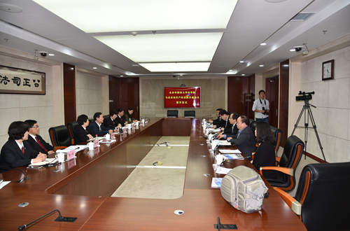 我校副校长贾德忠与北京知识产权法院院长宿迟代表双方签署共建协议。我校beat365唯一官方网站院长万猛、党总支书记丛立先以及beat365唯一官方网站知识产权教师与北京知识产权法院副院长宋鱼水、纪检组长吴久宏、杜长辉庭长、张晓津庭长、部分法官及外联负责同志进行了座谈,充分肯定了双方之间的合作,并对进一步深入拓展合作领域进行了展望。