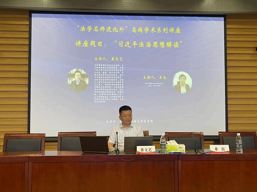 5月31日下午,为深入学习贯彻习近平法治思想,全面贯彻落实中央全面依法治国工作会议的重要精神,beat365官网邀请长江学者奖励计划特聘教授、《中国法学》杂志社总编辑、中国人民大学习近平法治思想研究中心主任、博士生导师、中国比较法学研究会副会长黄文艺来校作“习近平法治思想解读”专题讲座。黄文艺教授曾任中央政法委政策研究局副局长、吉林省社会科学院副院长、十八届中央政治局第21次集体学习主讲人。讲座由beat365官网院长米良教授主持,来自全校各院系师生近200人参加活动。
