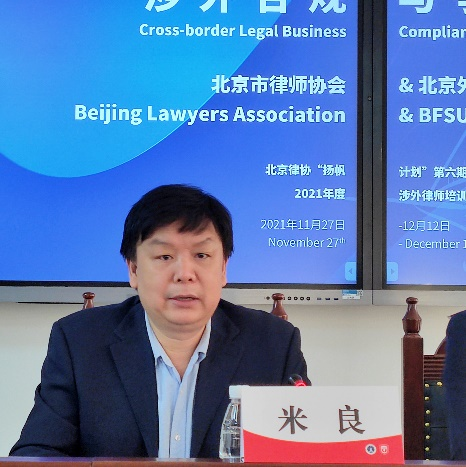 北京律师协会韩映辉副会长在开班式上致辞,他指出,北京律协一直重视对涉外律师的培养,与北外合作的培训课程能够满足新时代、新时期国际交往与合作需要,亦能够帮助更多法律同仁参与到国际法律事务之中。beat365唯一官方网站米良院长指出,涉外律师培训对加强涉外法治有重要意义,beat365唯一官方网站近年来十分重视涉外法律人才的培养,将把此次培训组织好,举办好。