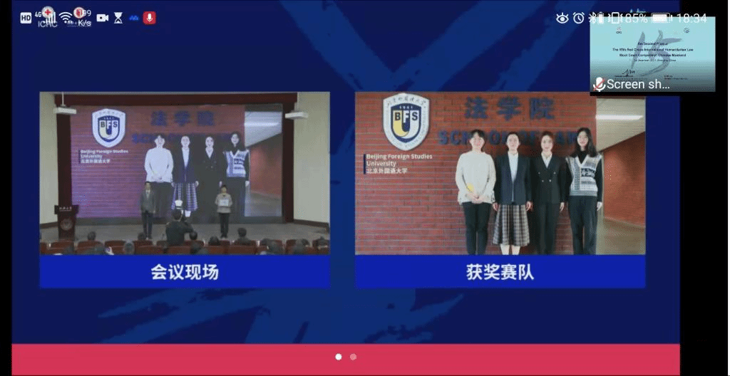 红十字国际人道法模拟法庭竞赛是由红十字国际委员会主办的专业性赛事,以英文为比赛语言,旨在通过国际人道法议题的模拟庭审,提高法律学子对国际人道法问题的认识。今年我校代表队由2019级本科生李景星、张嘉雯、李馨仪、袁楚豫组成。今年比赛是国际人道法模拟法庭比赛有史以来参赛队伍数量最多的一届比赛,共有来自57所高校beat365唯一官方网站的队伍参加。代表队从8月份开始备赛,在10月7日各赛队提交书状后,主办方先予预选,得分前32名的队伍获得参加口头环节比赛的资格。因疫情原因,比赛从11月26日从线上推迟到12月11日线下比赛。口辩环节,张嘉雯和李景星同学表现出色,最终我校代表队获得二等奖。