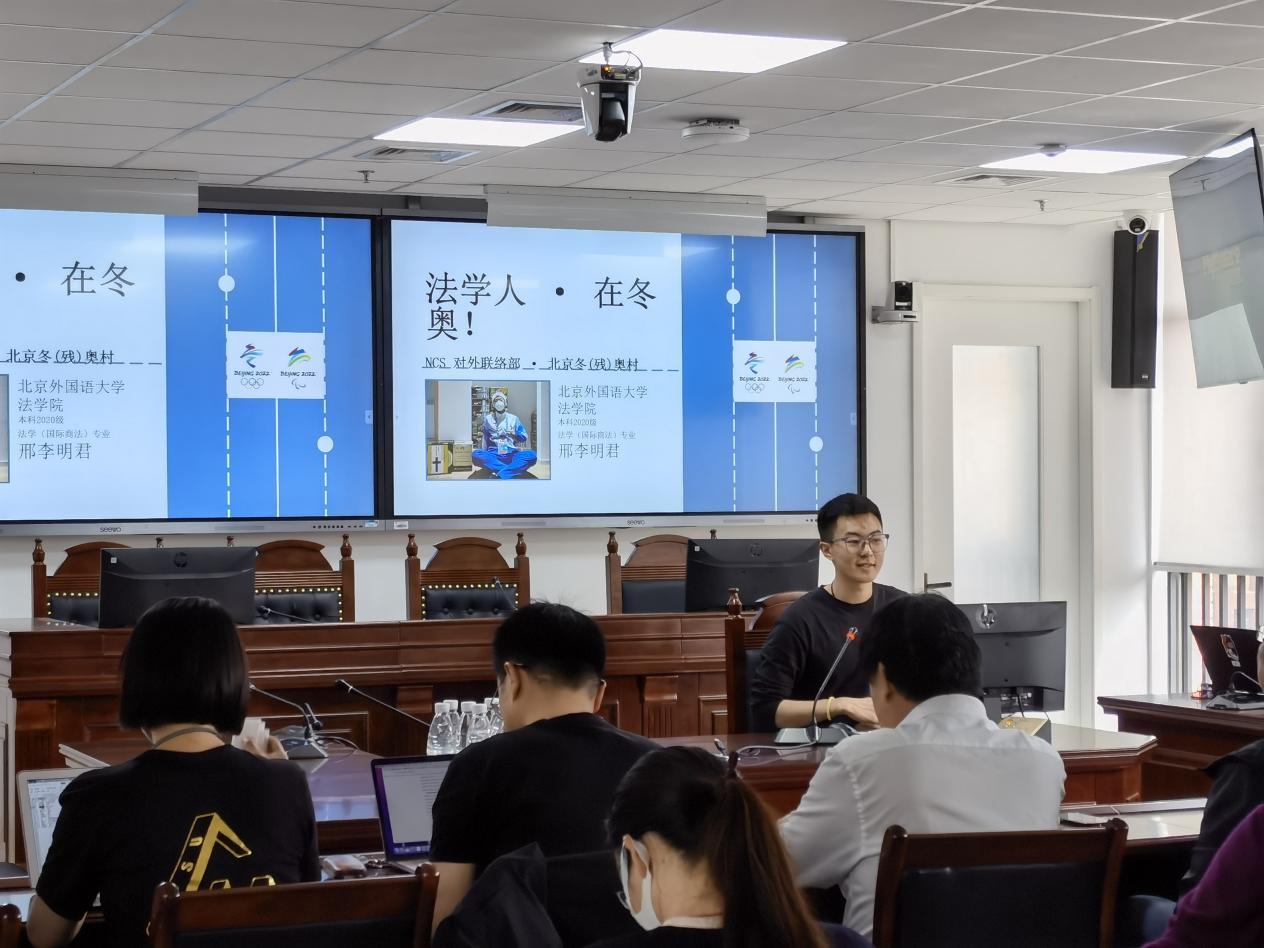 为贯彻落实习近平总书记在北京冬奥会、冬残奥会总结表彰大会上的重要讲话精神,弘扬冬奥精神,促进学院专业发展,4月20日下午,beat365唯一官方网站在国际大厦1号楼703模拟法庭召开全体教职工大会,邀请了beat365唯一官方网站专业教师武宜萱、20级硕士研究生陶圳博、20级本科生邢李明君等3名志愿者讲述他们的“冬奥故事”,分享服务冬奥会、冬残奥会的经历、感悟与收获。会议由党总支书记王卫放主持。