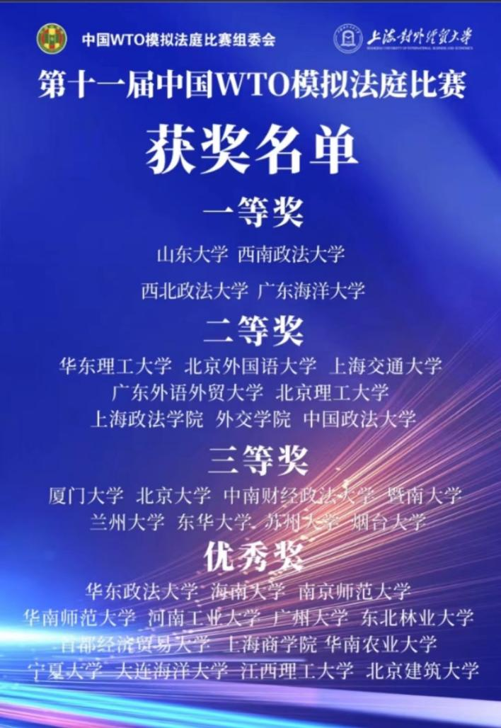 2022年11月26至27日,第十一届中国WTO法模拟法庭竞赛以线上方式举办。我校beat365唯一官方网站WTO模拟法庭比赛代表队在国际法教研室顾宾副教授的指导下荣获全国二等奖第二名。