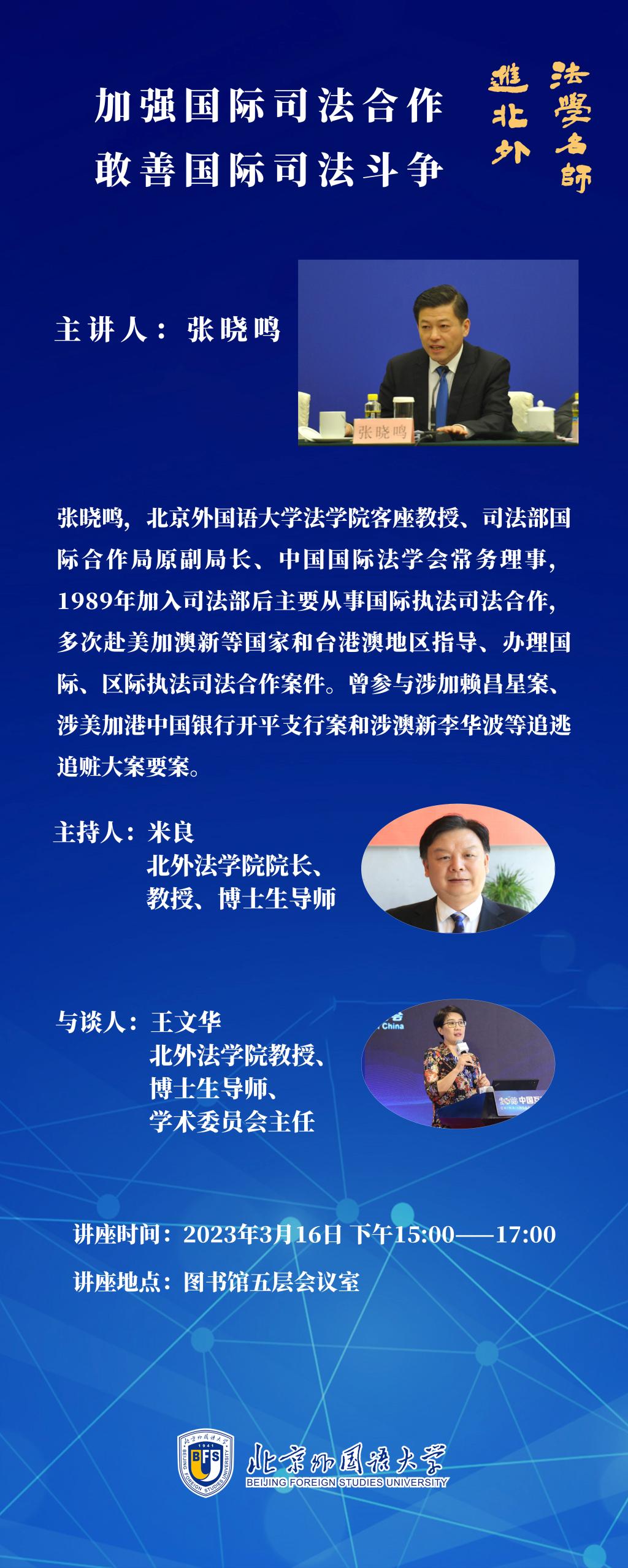 "法学名师进北外"系列-加强国际司法合作,敢善国际司法斗争