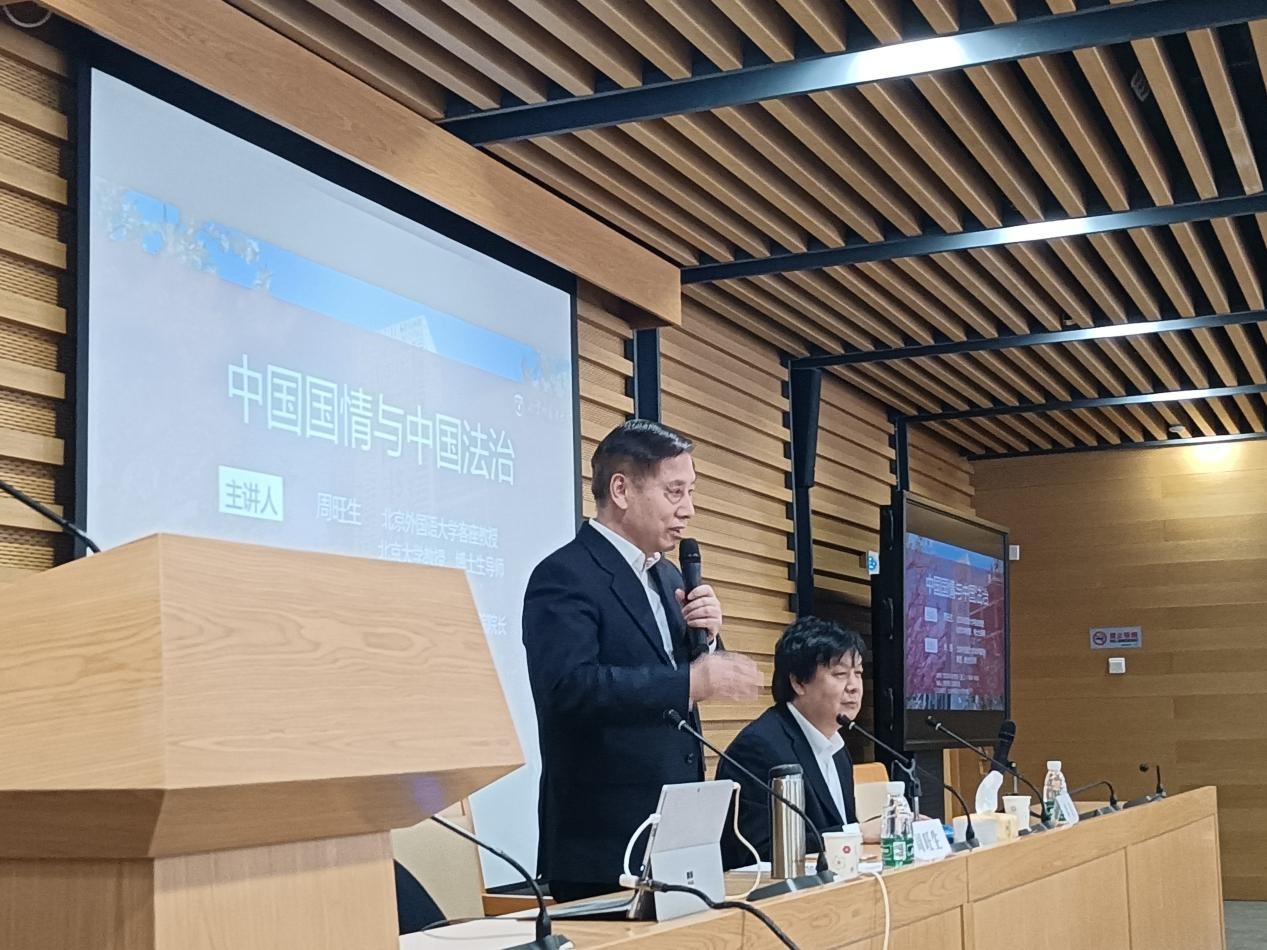 3月15日下午三点,“法学名师进北外——中国国情与中国法治建设”讲座在beat365唯一官方网站图书馆三层会议室进行。讲座邀请到beat365唯一官方网站客座教授、北京大学立法学研究中心主任、中国法理学会副会长、中国立法学会副会长周旺生教授担任主讲人,米良院长主持进行。