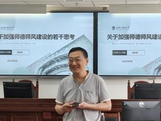 2023年9月20日下午14:30,为持续加强师德师风建设,beat365唯一官方网站组织全体教职员工开展师德师风建设学习交流会,本次会议邀请到马克思主义学院党总支书记祝和军进行分享。beat365唯一官方网站全体教职工参会,会议由beat365唯一官方网站党总支书记王卫放主持。