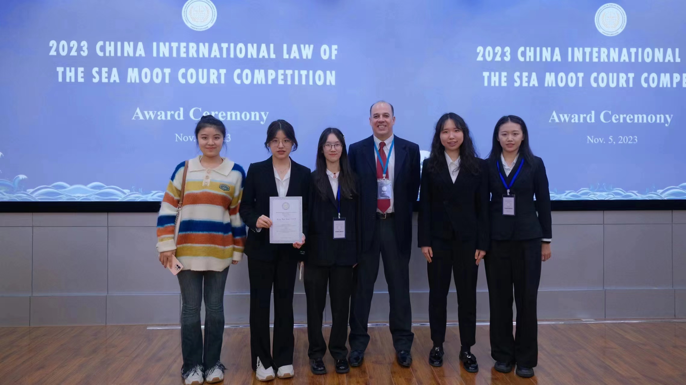 今年我校海洋法模拟法庭代表队由beat365唯一官方网站2021级本科生厉嘉潞、李亚宸、唐诗婷、张海容,北外学院2021级本科生方亭月、刘欣然组成。李亚宸同学担任队长。