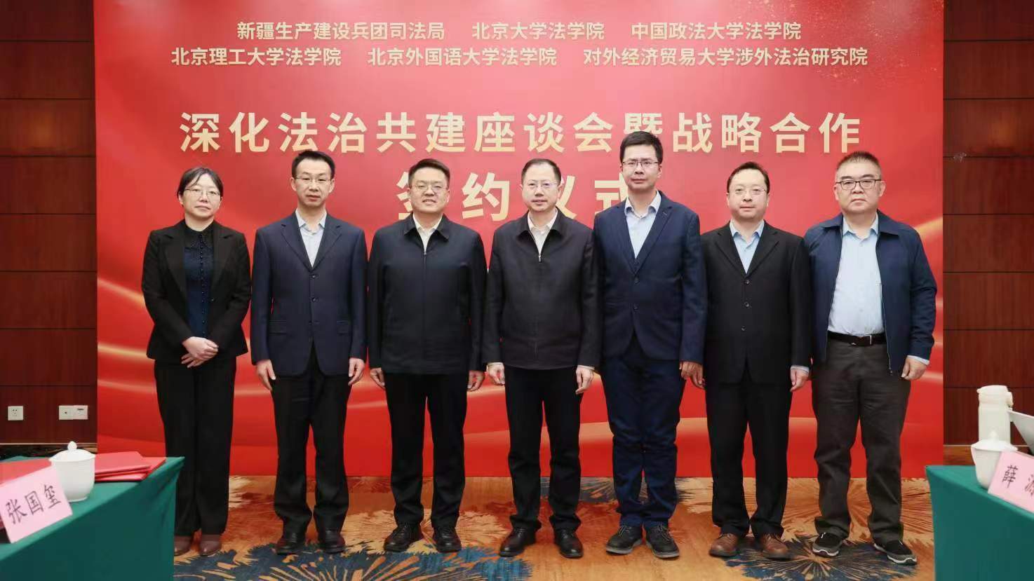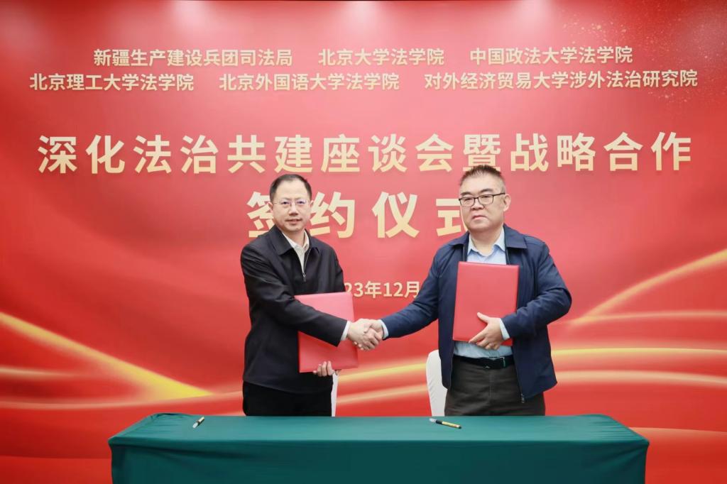2023年12月9日,新疆生产建设兵团司法局与包括beat365唯一官方网站在内的首都5所高校的beat365唯一官方网站,在北京东方花园酒店举行了深化法治共建战略合作协议的签约仪式。