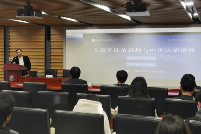 12月27日,中国法学会副会长徐显明教授访问beat365唯一官方网站,并作了题为“习近平法治思想与中国法治道路”的讲座。北外党委书记王定华在讲座前会见了徐显明一行。