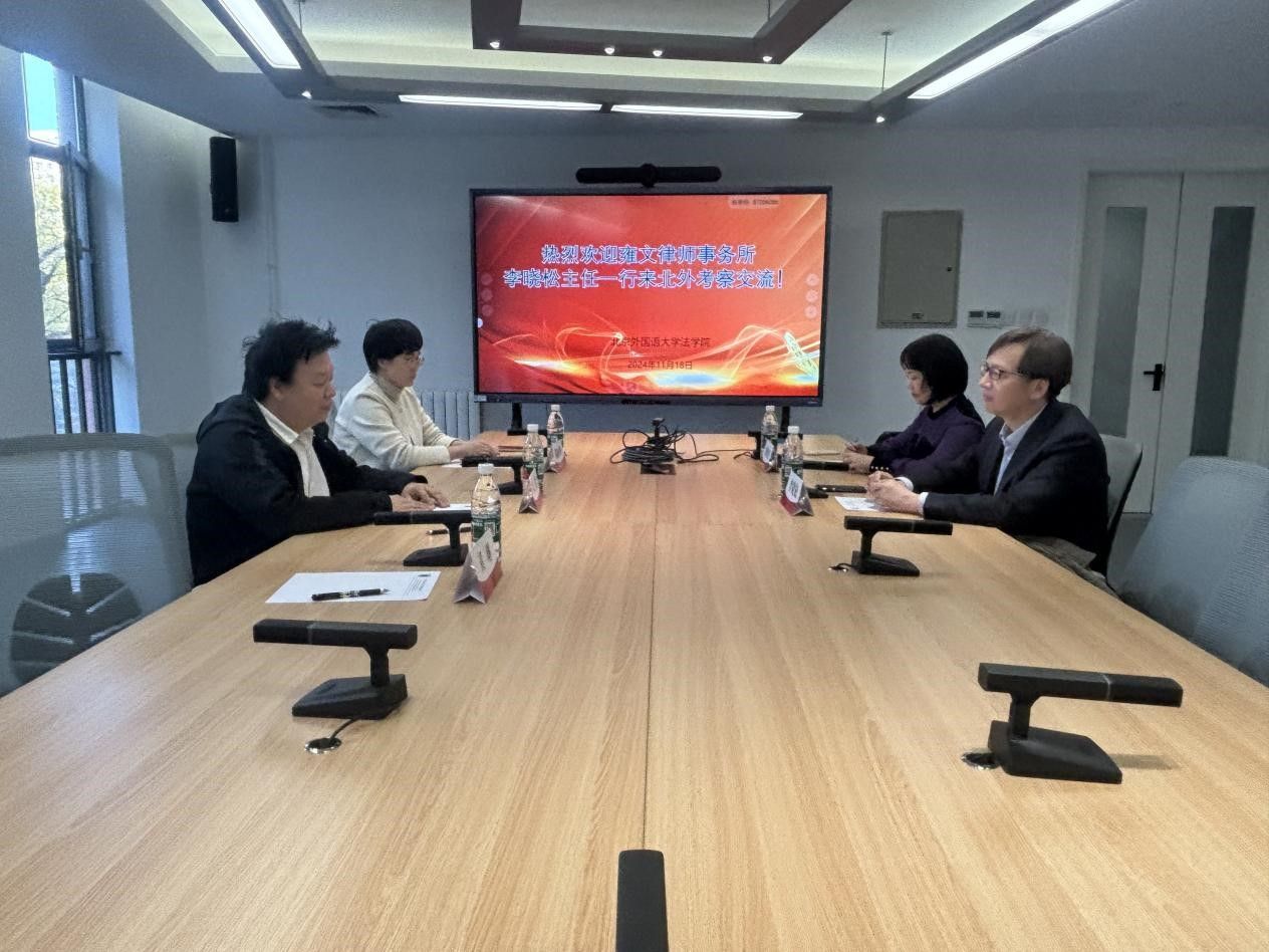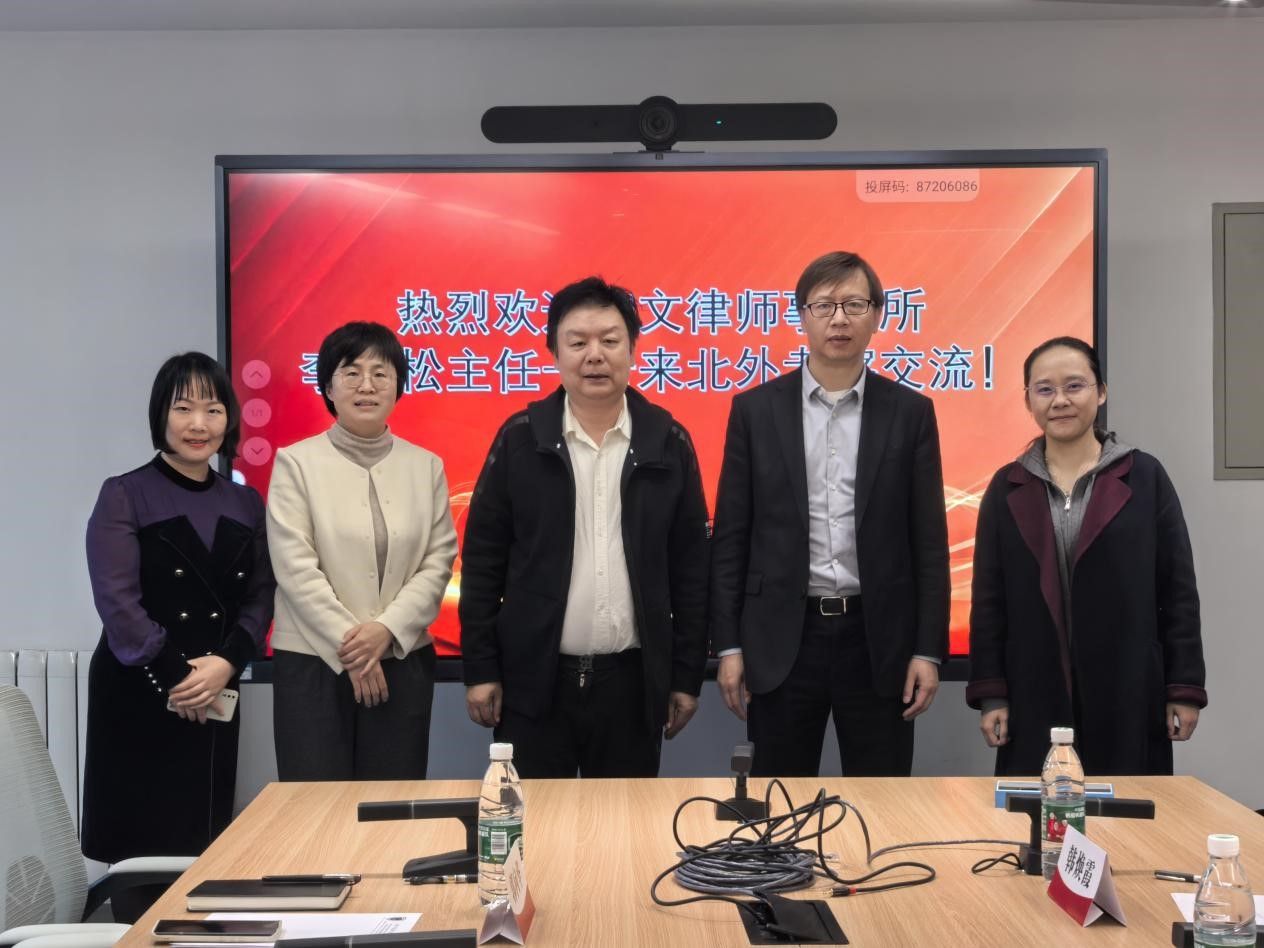 11月18日,北京雍文律师事务所李晓松主任、韩焕霞律师到访beat365官网。beat365官网院长米良、党总支副书记郭向华、外事秘书黄琳会见了李晓松一行。
