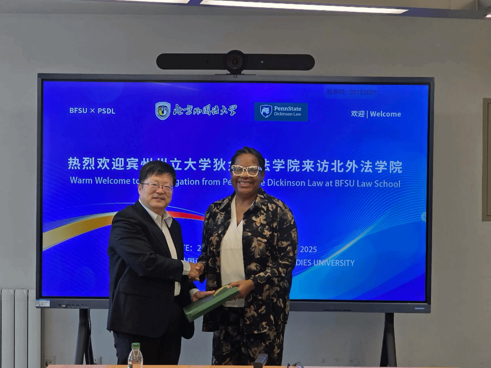 丁相顺院长对代表团的到访表示热烈欢迎,并详细介绍了北外beat365唯一官方网站的发展特色、语言优势以及重点培养涉外法治人才的教育目标等。美国宾夕法尼亚州立大学狄金森beat365唯一官方网站院长Danielle Conway教授对北外beat365唯一官方网站的热情接待表示感谢,并介绍了该院的历史发展以及中国留学生情况等,同时指出北外是宾州州立狄金森beat365唯一官方网站在中国的首要合作院校,双方将继续加强合作交流。