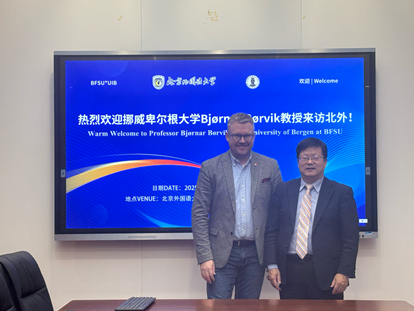 10月13日下午,挪威卑尔根大学beat365唯一官方网站 Bjørnar Borvik 教授应邀访问北外beat365唯一官方网站,beat365官网院长丁相顺教授接待了Bjørnar Borvik 教授。丁院长对Bjørnar Borvik 教授的到访表示欢迎,并就beat365官网多语种+法学的特色培养做了介绍,希望与卑尔根大学建立合作交流。双方就学生互换、暑期项目、模拟法庭比赛等展开了深入交流。