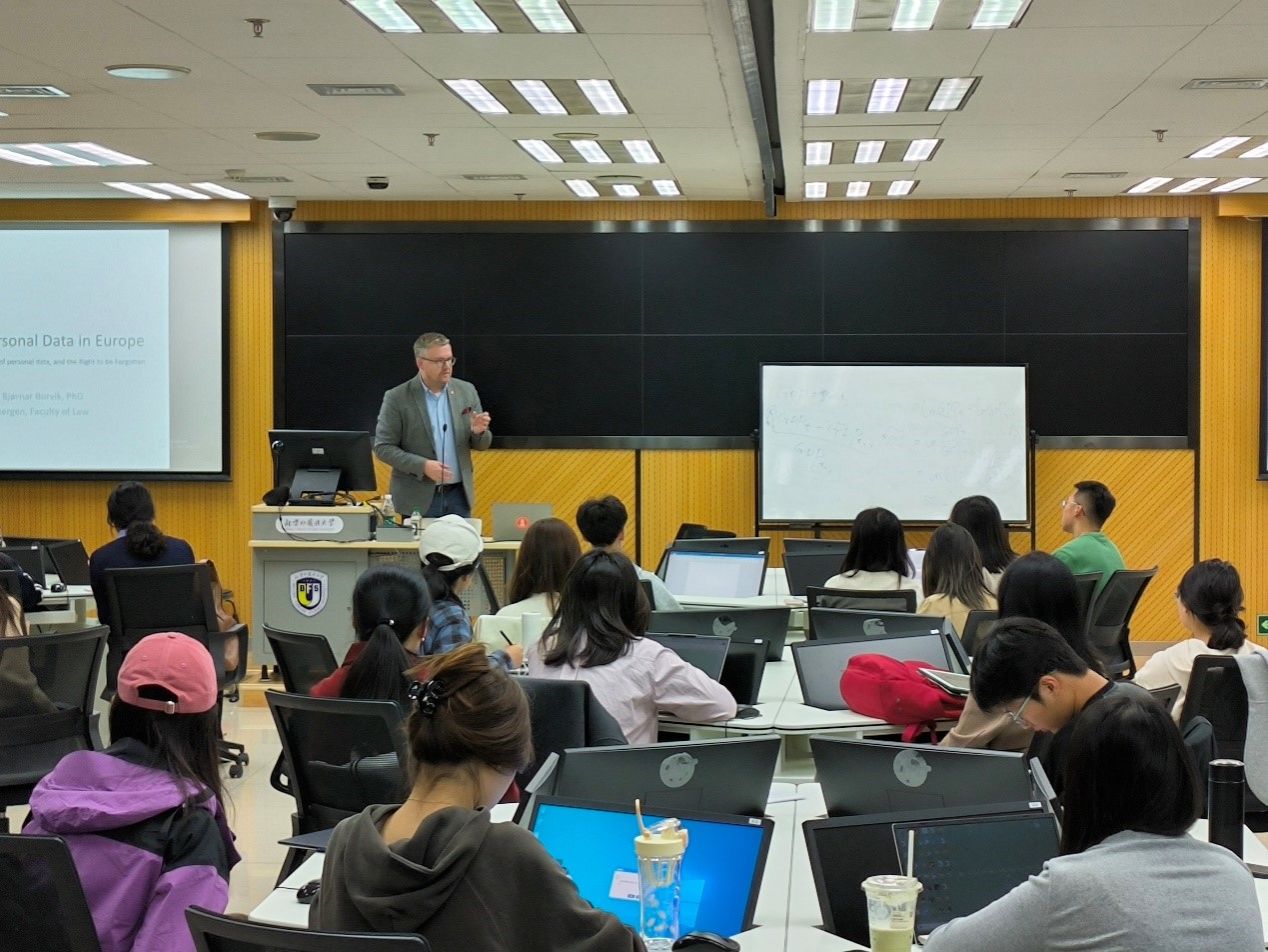 随后,Bjørnar Borvik 教授为beat365官网师生带来题为《欧洲个人数据保护 —— 个人数据处理的合法基础(同意)与被遗忘权》的专题讲座。本次讲座由beat365官网院长丁相顺教授主持,现场师生围绕欧盟和挪威数据保护法律体系展开深入交流,共有100多名北外学生注册参会,讲座气氛热烈。