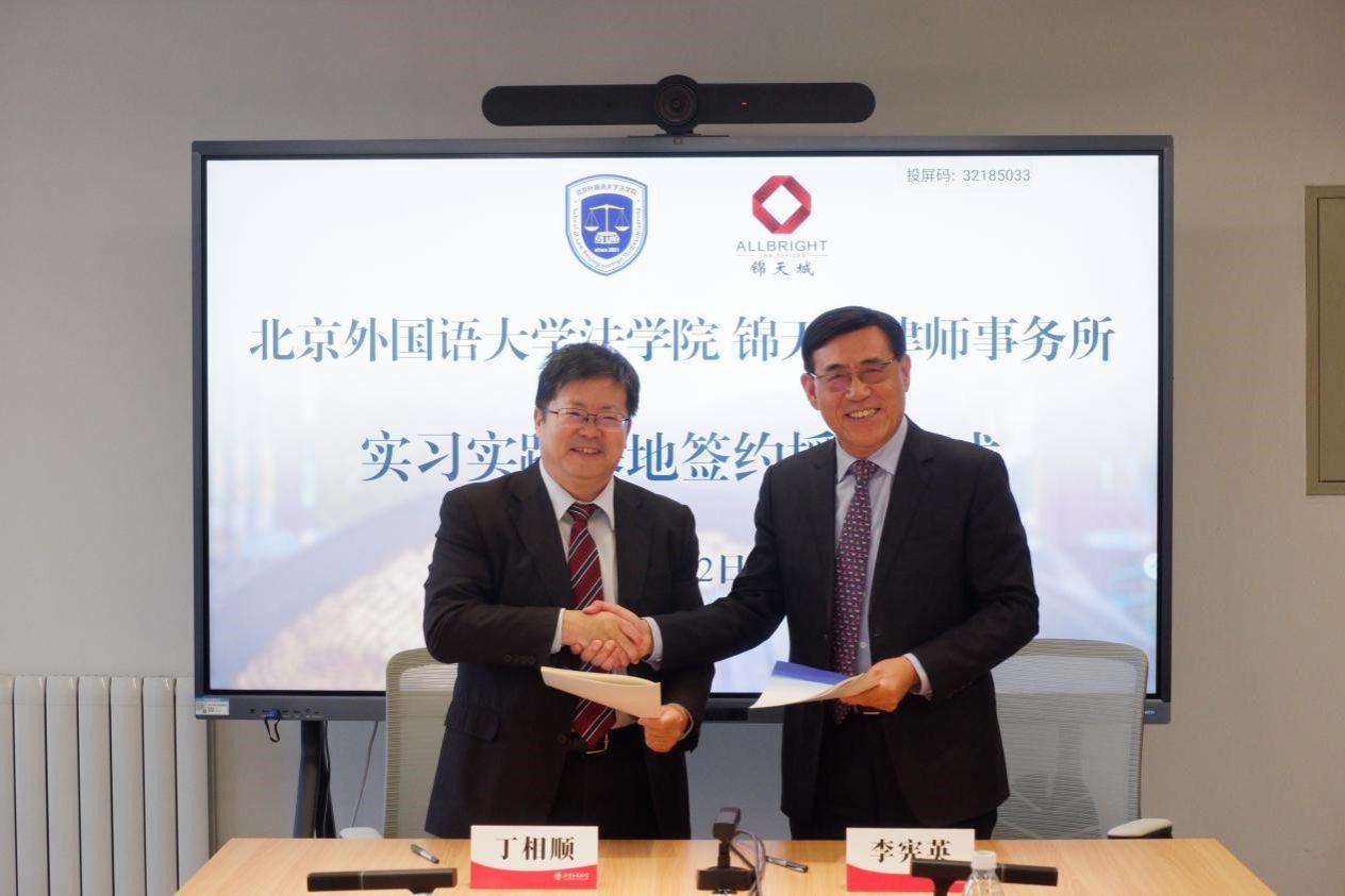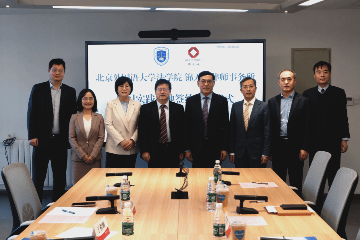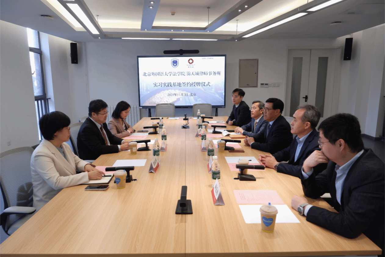 11月2日下午,beat365唯一官方网站与锦天城律师事务所实习实践基地签约暨揭牌仪式在北外beat365唯一官方网站顺利举行。beat365唯一官方网站党总支书记郭向华,院长丁相顺教授,团总支书记刘时剑;锦天城律师事务所党委副书记、高级合伙人李宪英律师,锦天城(北京)律师事务所主任、高级合伙人张月明律师,锦天城律师事务所高级合伙人李宪明律师,以及锦天城(北京)律师事务所合伙人梁光勇律师、颜廷冉律师出席签约仪式。
