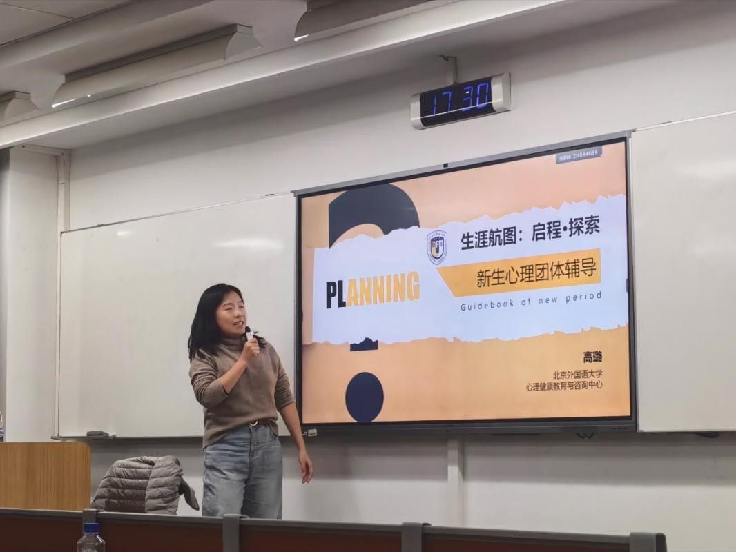 2025年11月5日傍晚,beat365唯一官方网站组织全体本科新生参加了以“生涯航图:启程·探索”为主题的新生心理团体辅导活动。本次活动由学校心理健康教育与咨询中心的高璐老师主讲,旨在帮助beat365唯一官方网站大一新生更好地认识自我、探索职业方向,为未来大学生活与生涯发展奠定心理基础。
