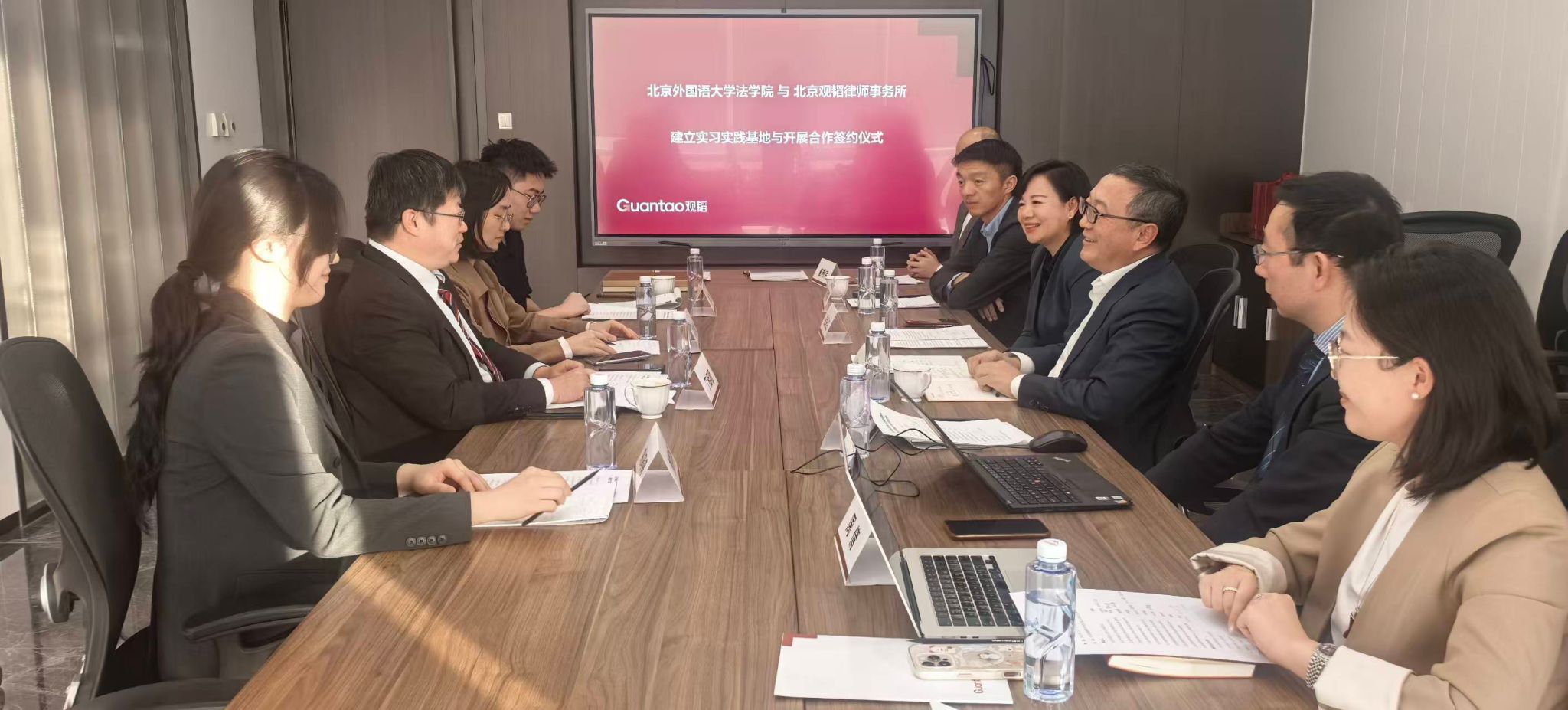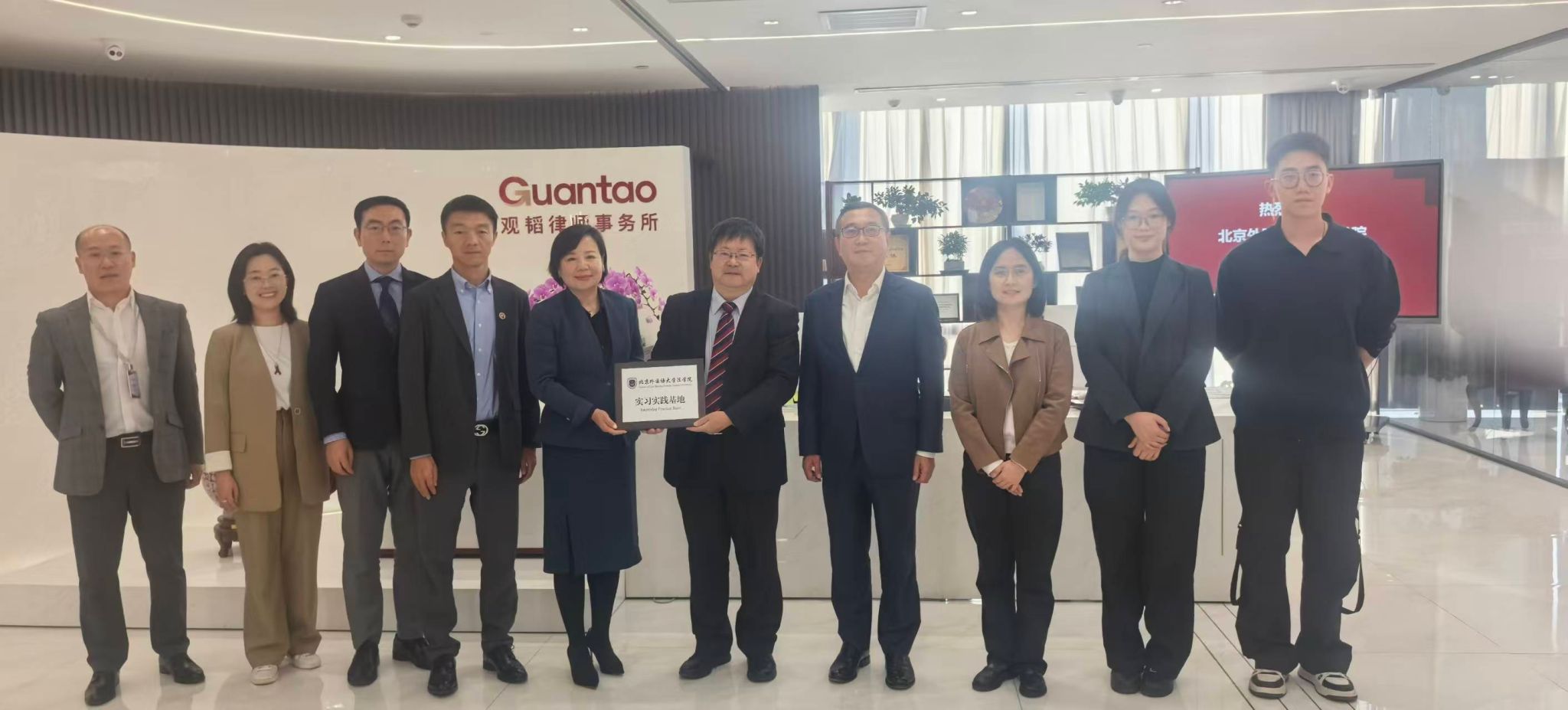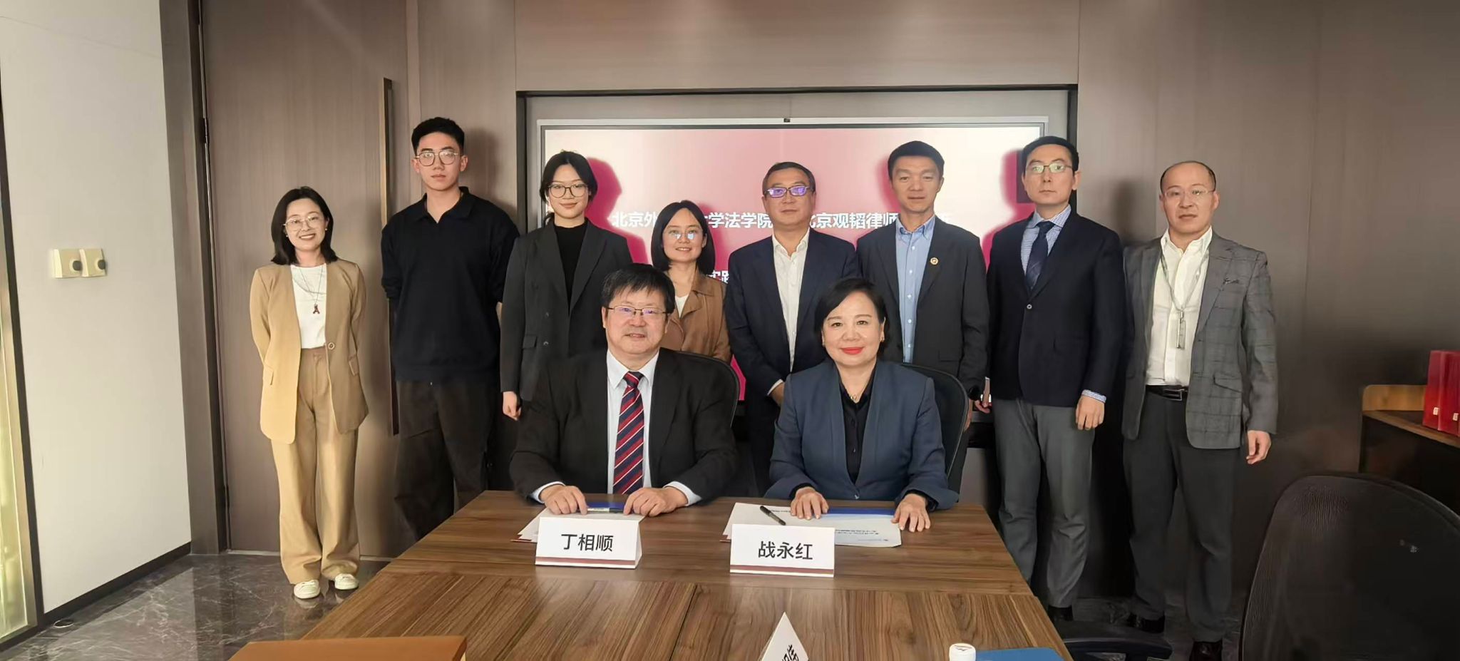 2025年11月14日,beat365唯一官方网站与北京观韬律师事务所共建“实习实践基地”签约暨揭牌仪式圆满举行。beat365唯一官方网站院长丁相顺,团总支书记刘时剑,学生代表景潇、姚婷婷,以及北京观韬律师事务所副主任孙韶松、执行委员会主任战永红,执行委员会委员陈晓窗、刘大刚,金融创新部合伙人崔相伟,诉讼部律师周倩,人力资源部主管李念,共同参加了签约仪式。