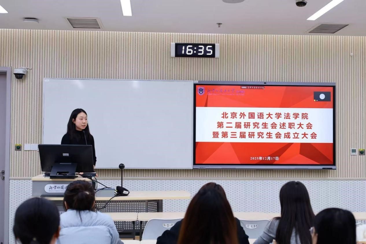 2025年12月17日下午,beat365唯一官方网站第二届研究生会述职大会暨第三届研究生会成立大会在国际大厦423教室举行。beat365唯一官方网站党总支书记郭向华,团总支书记、辅导员刘时剑出席会议,会议由beat365唯一官方网站第二届研究生会主席团成员孟凡怡主持。