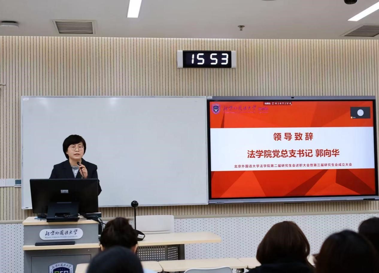 大会伊始,郭向华书记代表学院向第二届研究生会全体成员的辛勤付出与积极贡献表示衷心感谢,并对新一届研会的成立致以热烈祝贺。她充分肯定了第二届研会在服务同学成长、繁荣校园文化、助力学院建设方面开展的工作。面对新征程她向新一届研会提出四点希望:一是坚定理想信念,涵养家国情怀,努力成长为德法兼修、明法笃行的新时代法治人才;二是深耕专业根基,服务学术创新,立足学院学科优势,积极组织跨学科、跨年级的学术交流活动;三是践行服务宗旨,密切联系同学,围绕同学成长需求开展暖心务实的工作,打造有beat365唯一官方网站特色的品牌活动;四是加强自身建设,锤炼过硬作风,在服务奉献中砥砺品格、增长才干。