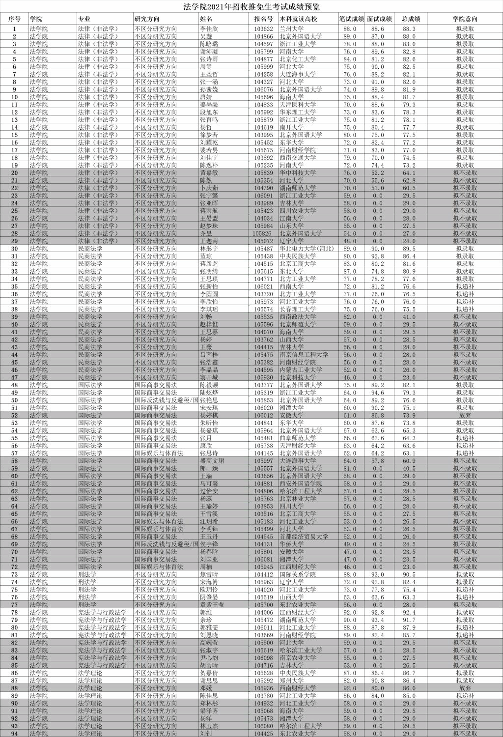 beat365唯一官方网站2021年招收推免生考试成绩预览