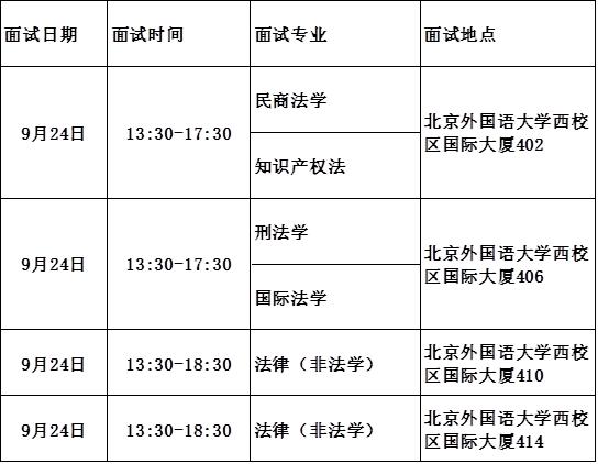 面试地点见下表: