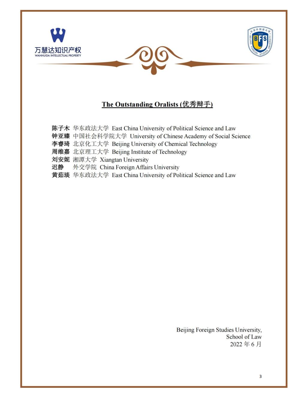 2022 List of Winners 获奖名单
